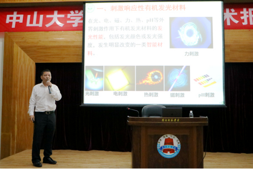 在学术报告的互动环节,他认真详细地回答学生就刺激响应性有机发光材料所提出的问题,以及老师在基金申请方面遇到的问题。