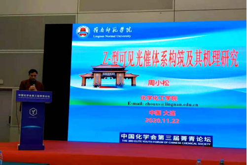 受大会邀请,周小松在论坛上作了题为“Z-型可见光催化体系构筑及其机理研究”的学术报告,并向与会代表介绍化学化工学院在学科建设、科学研究、人才培养、合作交流等方面取得的成就。化学化工学院在清洁能源及其关键材料领域的最新研究成果受到了与会代表的广泛关注,希望以此为契机增进我校化学学科与国内化学学界翘楚的交流联动与进一步合作。