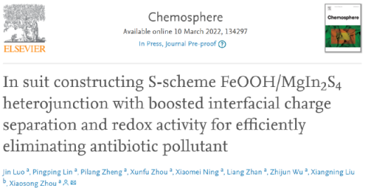 第一作者:Jin Luo通讯作者:周小松通讯单位:岭南师范学院DOI:10.1016/j.chemosphere.2022.134297