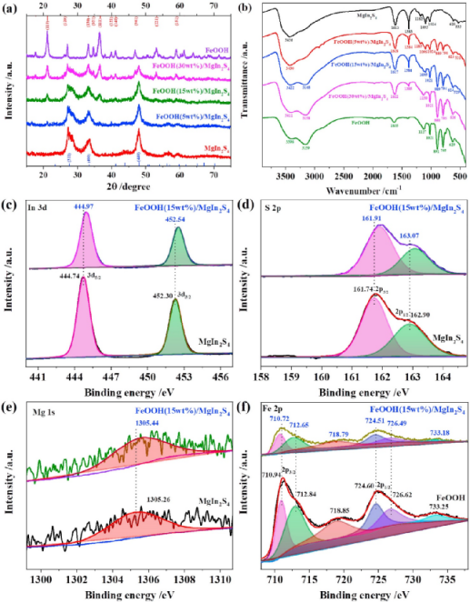 图1. FeOOH/MgIn2S4异质结的理化性质表征。