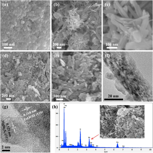 图2. FeOOH/MgIn2S4异质结的微观形貌表征。