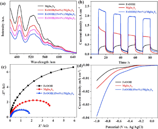 图5. FeOOH/MgIn2S4异质结的光电特性分析。