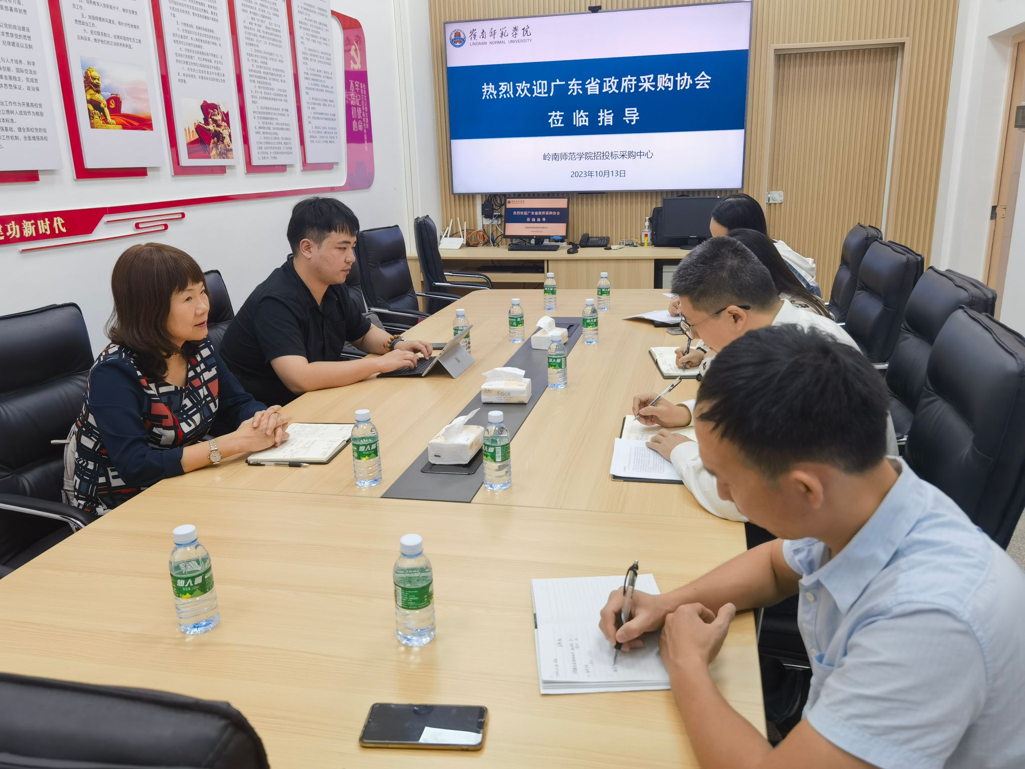 10月13日,广东省政府采购协会赵玉雯秘书长、服务部张鑫部长一行对我校进行会员单位走访调研。招投标采购中心副主任刘宇靖主持交流会,中心相关工作人员出席交流会。