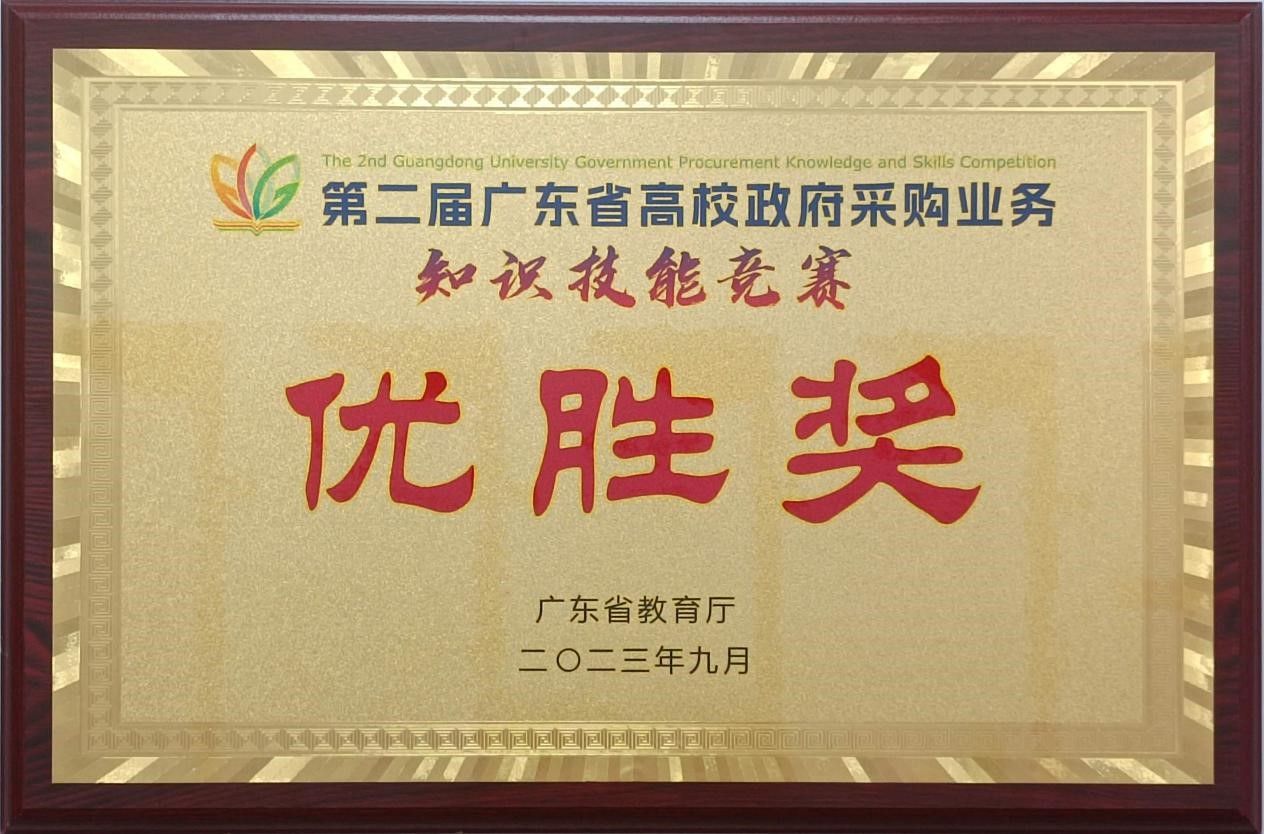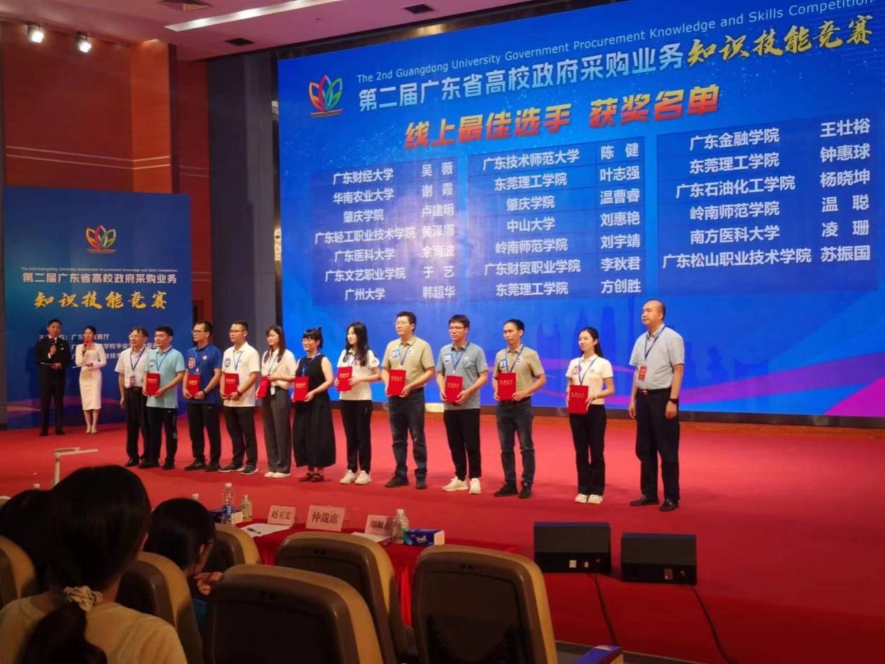 近日,由广东省教育厅主办的第二届广东省高校政府采购业务知识技能竞赛降下帷幕,经过激烈竞争,我校以全省团体总分第九名的好成绩荣获优胜奖,刘宇靖老师、温聪老师荣获“线上最佳选手”。