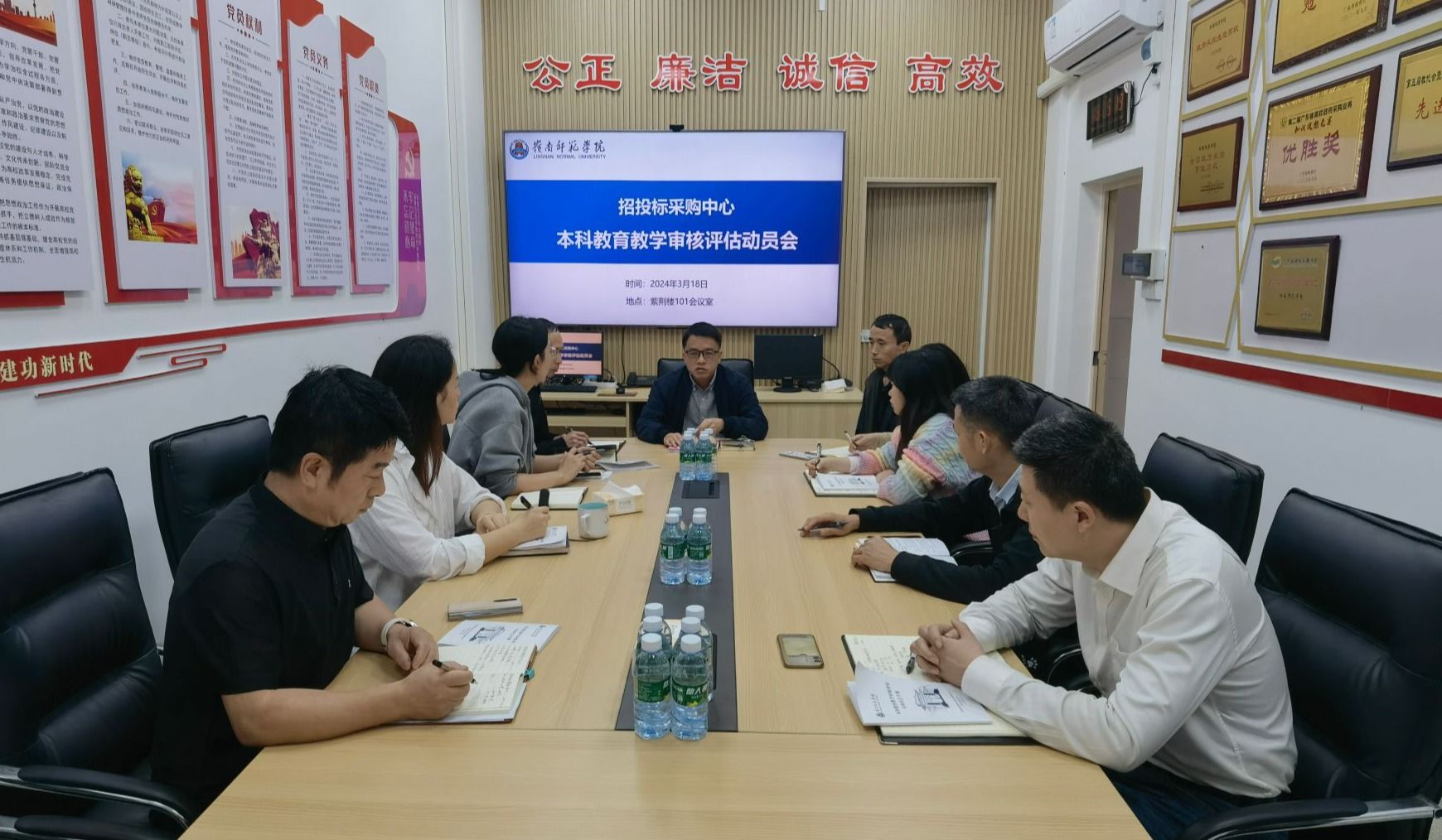 会上,成立了招标中心审核评估工作组,中心主任任组长,副主任任副组长,各科室科长为成员,按时高质完成各项工作,以良好的精神风貌迎接本科教育教学审核评估。
