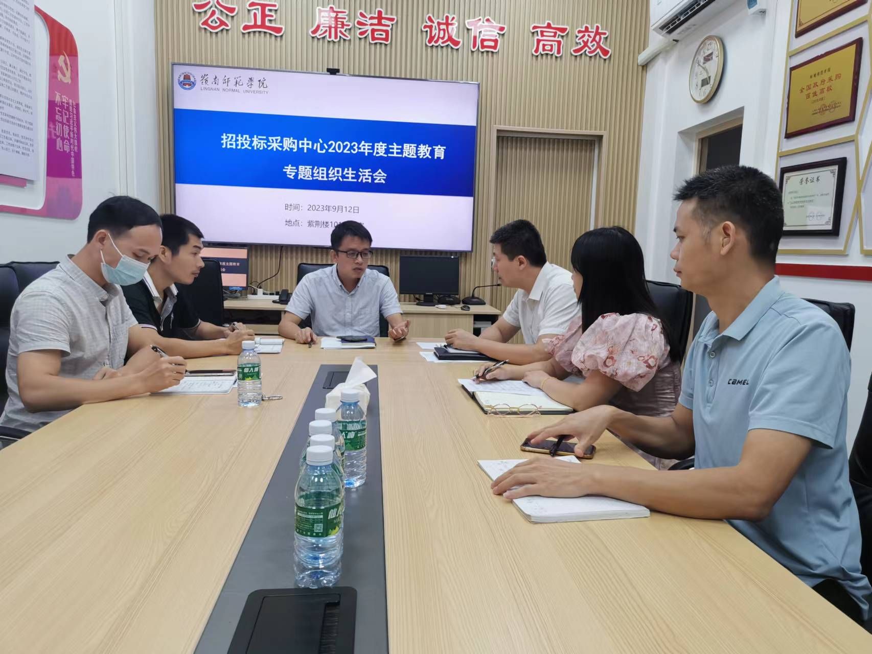 9月12日下午,招投标采购中心党支部召开主题教育专题组织生活会。会议由支部书记李亚九主持,全体党员围绕学习贯彻习近平新时代中国特色社会主义思想主题教育,聚焦学思想、强党性、重实践、建新功总要求,对照凝心铸魂筑牢根本、锤炼品格强化忠诚、实干担当促进发展、践行宗旨为民造福、廉洁奉公树立新风具体目标,深入学习领悟以学铸魂、以学增智、以学正风、以学促干的丰富内涵和实践要求,检视问题、深刻剖析,着力从思想根源上解决问题。