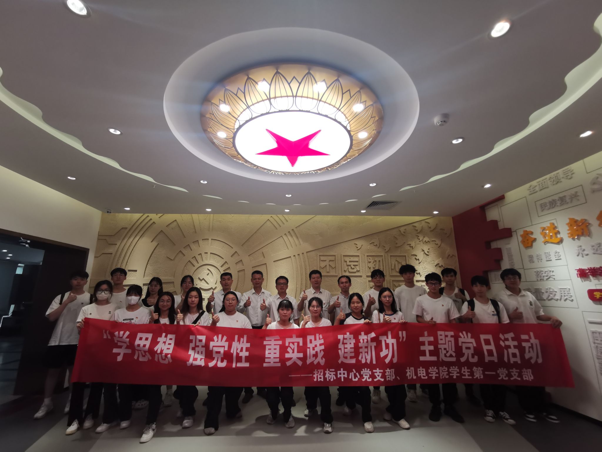6月19日下午,结合正在开展的学习贯彻习近平新时代中国特色社会主义思想主题教育,招投标采购中心党支部与机电工程学院学生第一党支部联合开展“学思想、强党性、重实践、建新功”主题党日活动。招投标采购中心党支部书记李亚九和支部党员、机电工程学院学生第一党支部书记江影东和学生党员共同参加参观党建文化学习空间和主题党日实践活动。