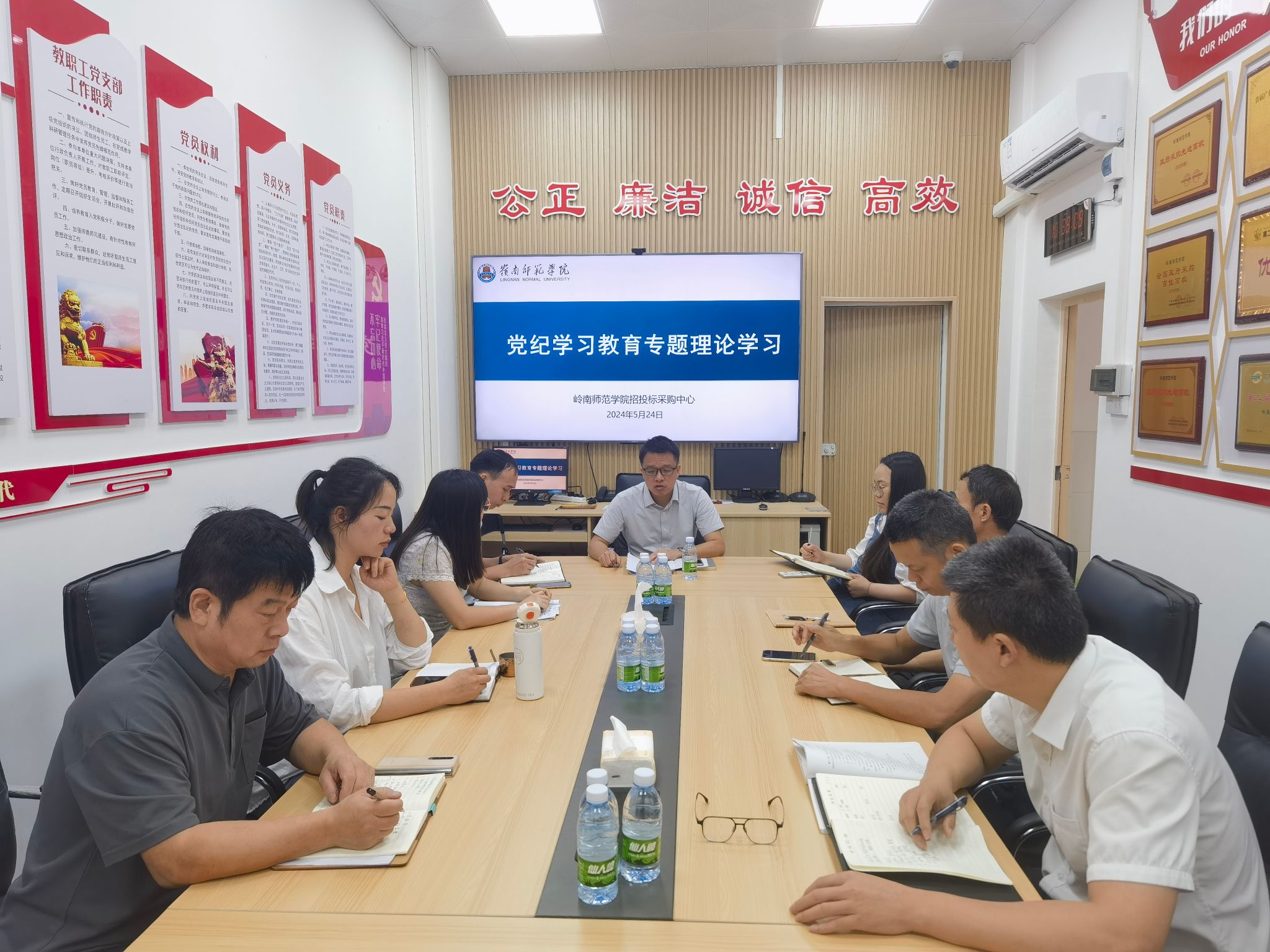 5月24日,招投标采购中心党支部书记李亚九以“精准把握条例主旨要义 牢记政治纪律组织纪律廉洁纪律”为全体人员讲授了一堂生动的党纪学习教育专题党课。