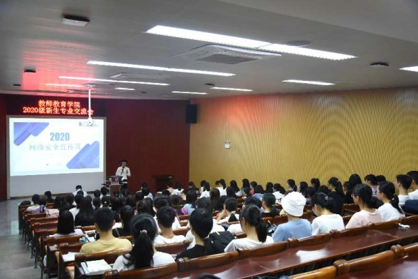 为了增进20级新生对教育技术学专业的了解,9月15号晚,教师教育学院在榕楼1楼举行专业介绍暨网络安全教育会。出席本次会议的有党总支副书记陈海东、教育技术系教师、辅导员贾冰妮、2020级新生、2020年专升本新生参加了此次活动。会议由袁旭老师主持。