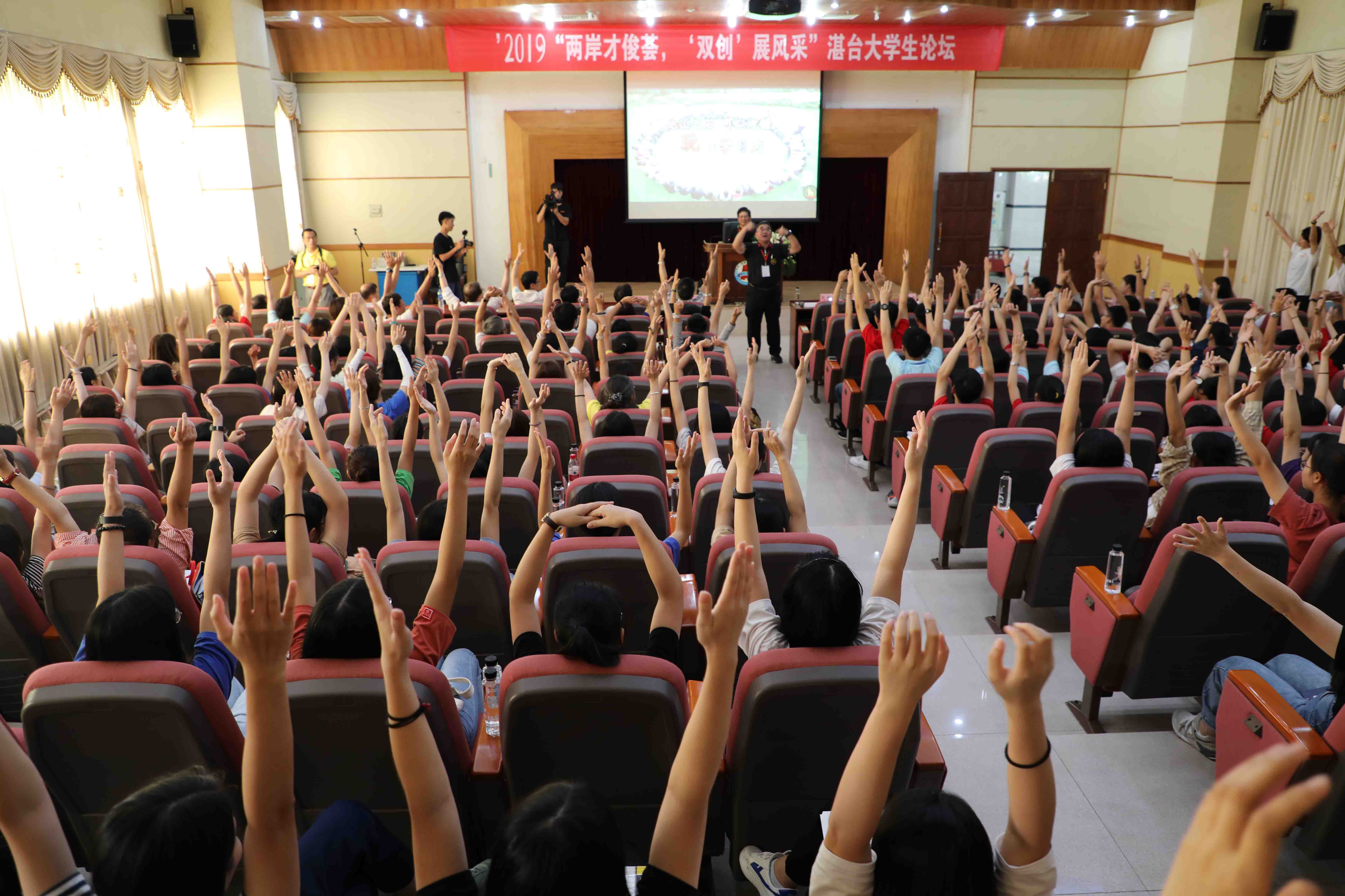 台东中教育师范大学兼任讲师范国梁教授现场教授“伸手操”。他指出,创新创业者要掌握举手、拍手、握手这“三只手”,要学会提问或者担当,鼓励和赞美,要广结善缘,寻找资源。中共湛江市委党校刘国军教授指出,大学生创业要把仰望星空和脚踏实地相结合,通过营造创新环境和教育培养,为中华民族伟大复兴做贡献。