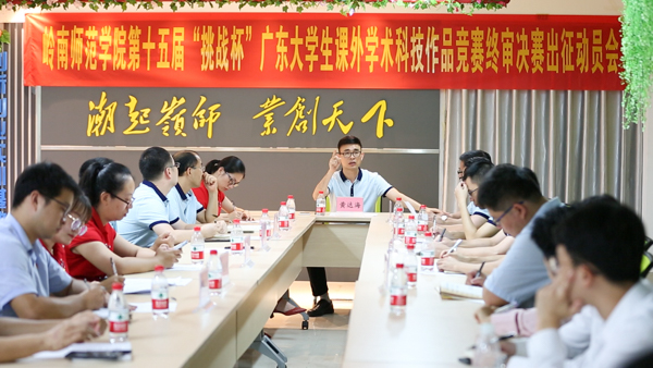 岭师新闻中心讯:5月23日,岭南师院第十五届“挑战杯”广东省大学生课外学术科技作品竞赛终审决赛出征动员会在大学生创新创业实训基地举行,校党委副书记黄达海出席会议为13支入围省赛的队伍授旗鼓劲,并将带队出征决赛。