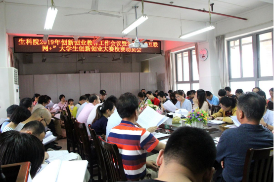 5月5日,生科院在燕雷楼d栋505室召开2019年创新创业教育工作会议暨第五届“互联网+”大学生创新创业大赛校赛动员会,生科院党委书记袁长春、院长陈道海、 党委副书记郑侯锦、副院长刘锴栋、王锂韫以及生科院全体教职工出席了本次会议。