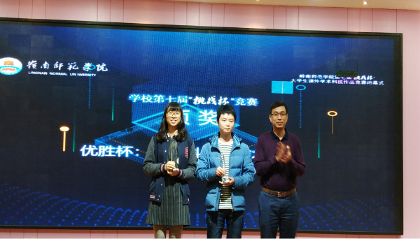 3月16日,学校第七届“挑战杯”大学生课外学术科技作品竞赛终审决赛在学校体育馆举行,物理学院选送23件作品参赛,共有9件发明创造类和10件自然科学类作品入围,最终8件作品获奖,其中一等奖1件,二等奖2件,并荣获学校“挑战杯”竞赛优胜杯。