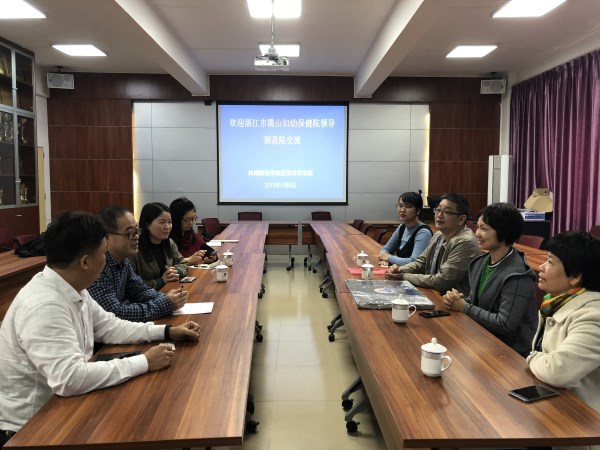 为积极做好学生的就业创业工作,服务学生成长成才,建设优质就业创业实践基地,1月9日上午,湛江市霞山区妇幼保健院戴娟茹副院长一行到我院交流合作,签订就业创业实践基地协议。教科院院长范兆雄、副书记李德深,特教系蔡瑞美、石梦良老师参加了签订仪式和座谈。