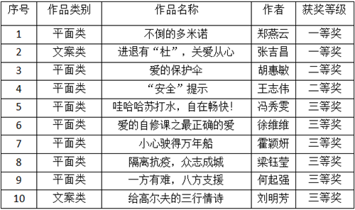 根据2020年第12届全国大学生广告艺术大赛广东赛区竞赛获奖公示结果,机电院师生在此次大赛中喜获佳绩,共有10件学生作品获奖,其中一等奖2项、二等奖2项、三等奖6项,晋新敏老师获得优秀指导教师称号。广东省竞赛获奖作品将报送北京,代表广东赛区参加全国总决赛。