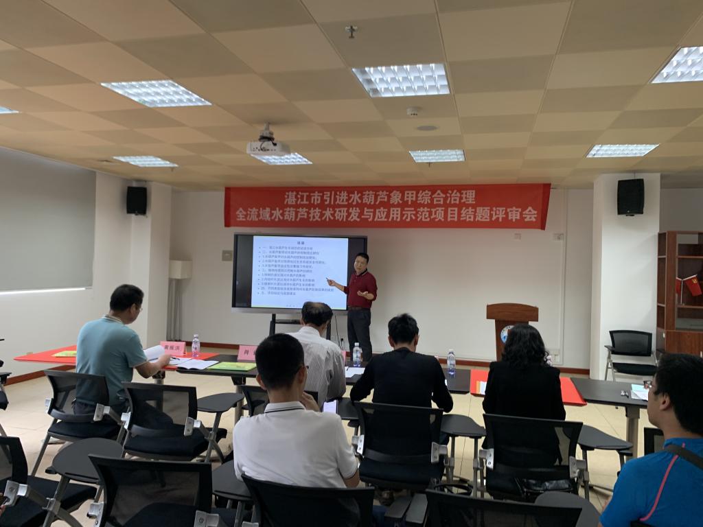 4月7日下午,“湛江市引进水葫芦象甲综合治理全流域水葫芦的技术研发与应用示范项目结题评审会”在图书馆二楼艺术创意空间站举行。湛江市科学技术协会领导,广东海洋大学韩维栋教授,中国热带农业科学院南亚热带作物研究所芒果研究中心王松标主任,岭南师范学院生命科学与技术学院陈蓉副教授参与会议。项目组成员、创新创业教育学院全体教师、广东海洋大学相关专业研究生现场观摩评审会议。市科协黄振洪部长主持评审会议。