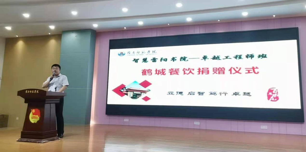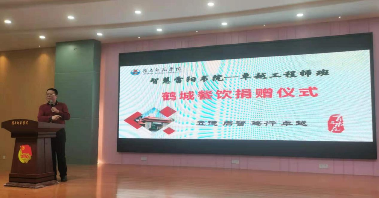 四月维夏,百卉俱开,清风明月。4月12日晚教三311,创新创业教育学院迎来了鹤城餐饮捐赠智慧雷阳书院卓越工程师班仪式。创新创业教育学院主要负责人刘金祥教授、卓越工程师导师信息工程学院副院长王树文、生命科学与技术学院副院长孙余丹、创新创业教育学院教学部主任张迪江应邀出席会议。双创学院副院长张洪军主持捐赠仪式。