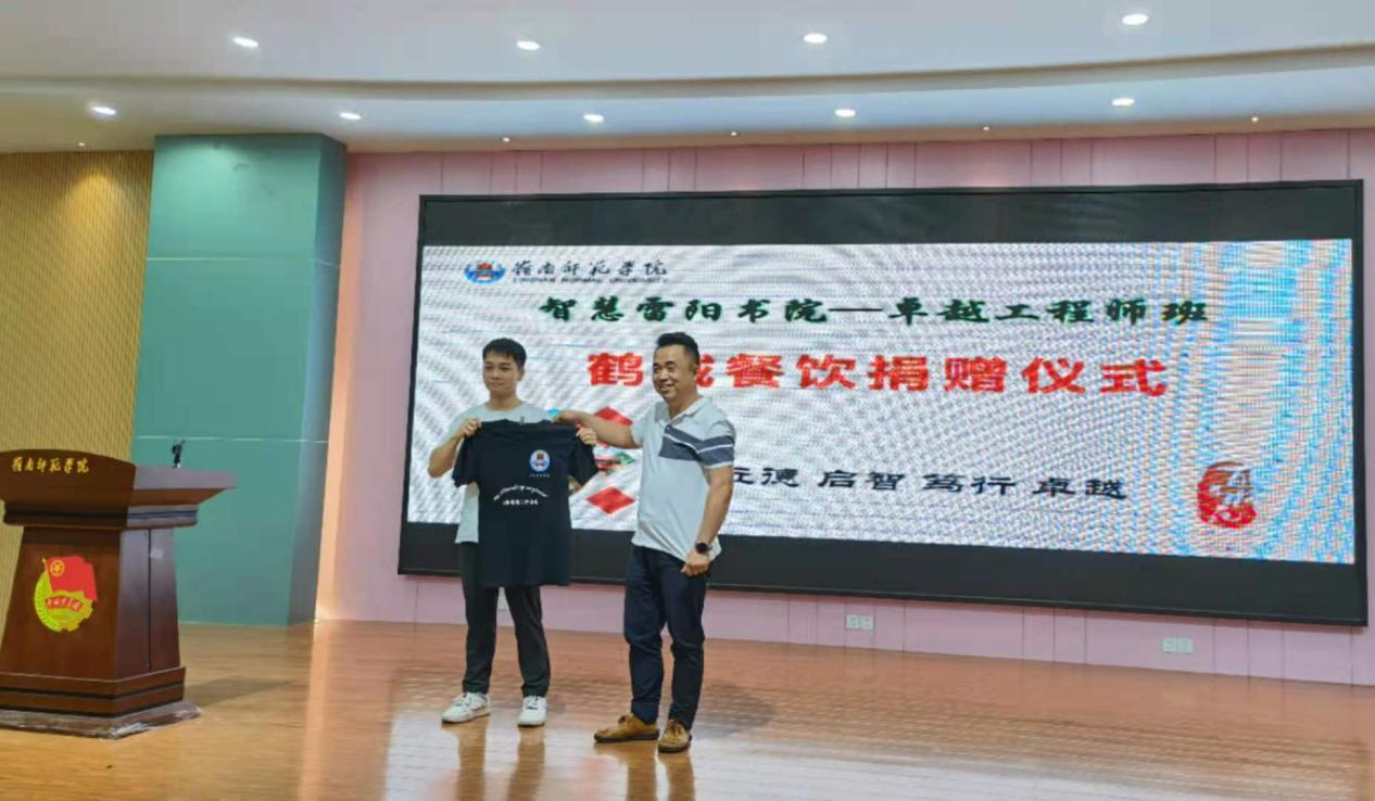 鹤城餐饮集团石磊总经理现场捐赠班服