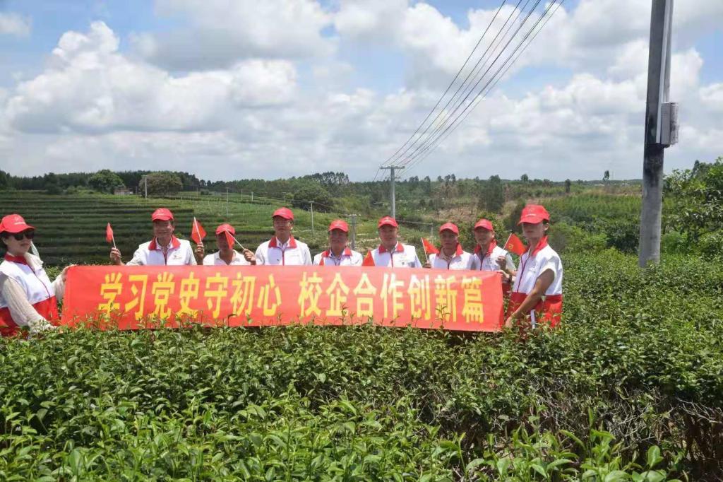 7月3日上午,岭南师范学院创新创业教育学院党支部和湛江市科学技术协会、湛江市科普中心到廉江市萱人境茶业有限公司,开展“学习党史守初心 校企合作创新篇”主题党日活动,深入学习贯彻习近平总书记在庆祝中国共产党成立100周年大会上的重要讲话精神,全面贯彻新发展理念,学党史、悟思想、办实事、开新局,携手共建现代农业产业园,积极推行“党建+产业振兴”“党建+生态振兴”,同心向党,绘就乡村振兴的美丽图景。岭南师范学院创新创业教育学院主要负责人刘金祥教授、湛江市科学技术协会肖斌主席、湛江市科普中心周柏中主任、萱人境茶业有限公司戴文勇董事长等参加了此次主题党日活动。