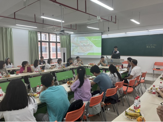 会上,两组学生创业团队负责人上台介绍项目供大家讨论,分别是沈炜老师指导的农拓优品团队和杨娟老师指导的怡仁团队。农拓优品是一支专注于乡村振兴的新生代创业团队;怡仁是专注研发国内首款春砂仁养胃糖果系列产品的团队。两位团队负责人表现优异,自信大方逻辑清晰地对项目进行了讲解。与会老师与同学们就项目展开热烈讨论,各抒己见,场面热烈。其中王莉强调,怡仁项目需要注意:①对社会痛点的描述不可含糊;②对竞品的分析必须深刻;③技术优势和技术壁垒是核心。农拓优品团队需要注意其项目汇报应围绕中国国际“互联网+”大赛的创意组的3点要求展开:①具有较好创意;②具有较为成型的产品原型;③或具有较为成型的服务模式。