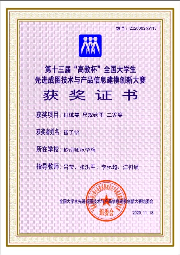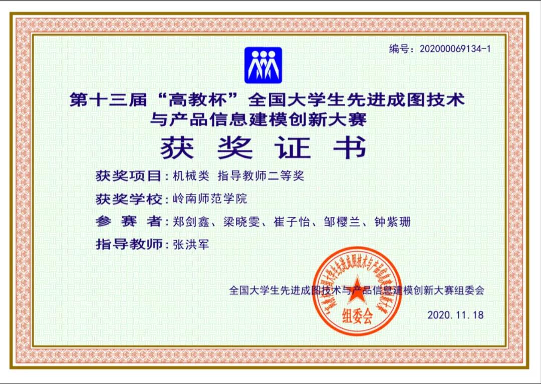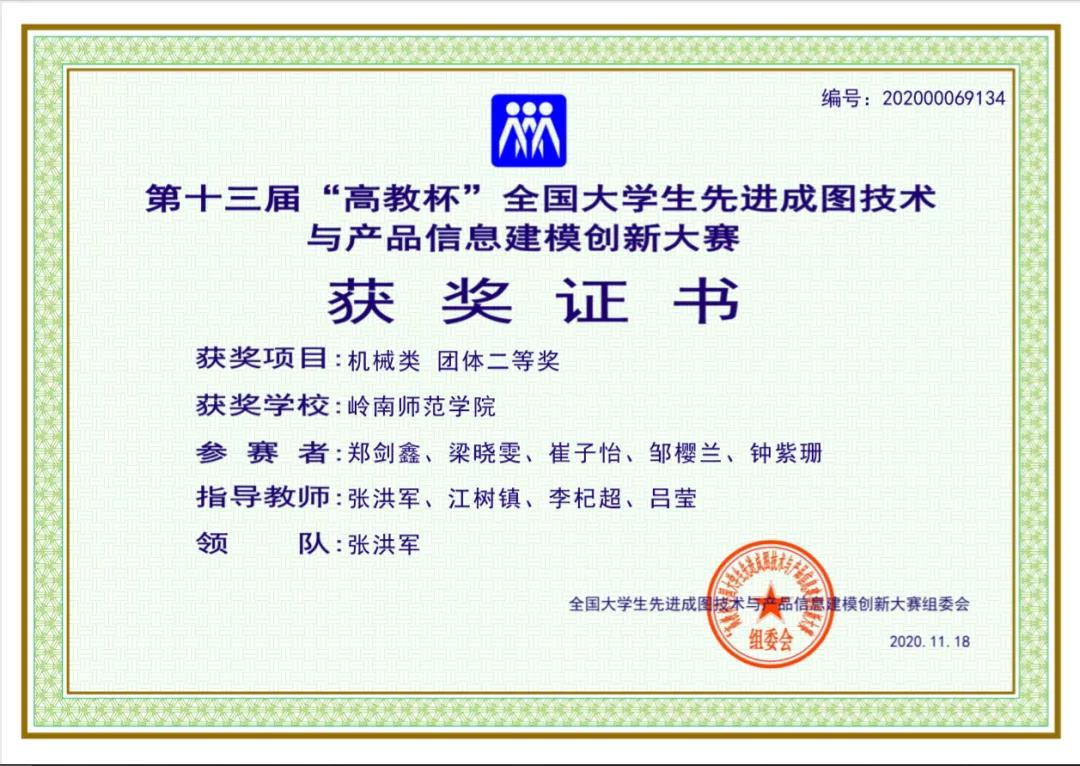 热烈祝贺岭南师范学院机电工程学院学子在第十三届“高教杯”全国大学生先进成图技术与产品信息建模创新大赛中取得优异成绩!