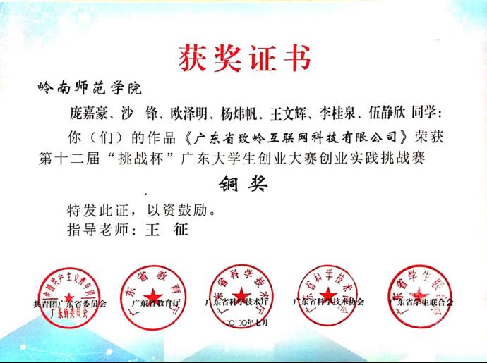 经过这些年的积累和沉淀,庞嘉豪在2019年正式开始“二次创业”,组建核心团队开展“青鸟集大学生社会实践管理系统的开发与运营”项目(以下简称“青鸟集”),并以此注册成立一家公司——广东省致岭互联网科技有限公司,同年,青鸟集项目荣获第十二届“挑战杯”广东大学生创业大赛创业实践挑战赛省奖,2020年荣获“广东省众创杯百强企业”称号。