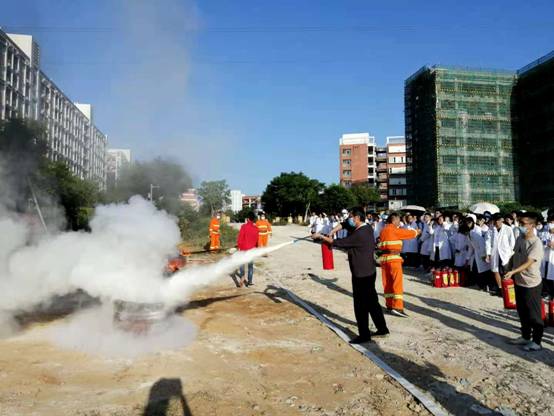 学校安全保卫处科长李力禹详细讲解了“灭火器的使用”