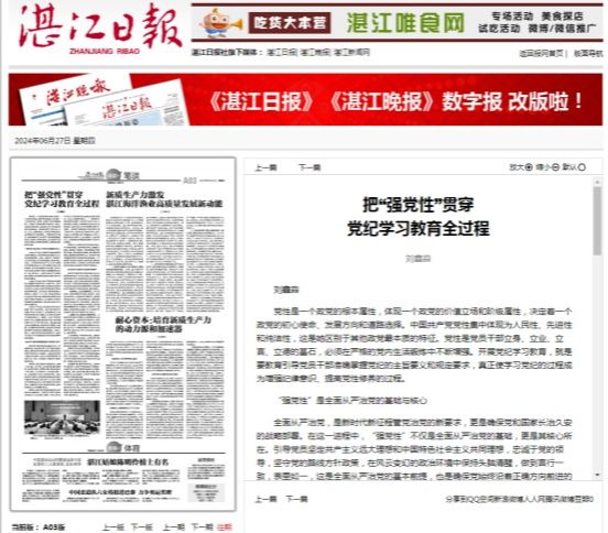 《湛江日报》发表刘鑫淼院长文章:《把“强党性”... 06-29http://paper.gdzjdaily.com.cn/html/2024-06/27/content_61645_976436.htm