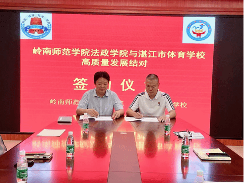 为全力推进《岭南师范学院赋能基础教育高质量发展行动方案》,5月26日,法政学院党委书记李德深、副院长娄伟、历史系主任景东升、思政系主任谢锦江、辅导员孟玉新等人赴湛江市体育学校开展基础教育高质量发展专项调研并完成签约。本次调研活动以座谈会的形式开展,法政学院李德深一行以及湛江市体育学校长黄科、副校长许斌、江军、教务科副科长刘续乔、姚平等参加了座谈会。