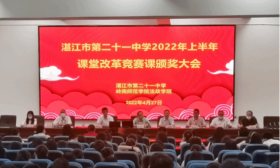 为贯彻落实《岭南师范学院赋能基础教育高质量发展行动方案》,法政学院与湛江市第二十一中学共同举办“课堂教学改革”竞赛活动。本学期初,法政学院主动对接湛江市第二十一中学,经双方协商,决定共同举办“课堂教学改革”竞赛活动。该活动从3月17日启动以来,老师们积极参与,经过多轮评选竞赛,活动取得圆满效果。4月27日下午,法政学院院长刘鑫淼、辅导员孟玉新赴结对合作学校湛江市第二十一中学参加该校2022年上半年课堂改革竞赛课颁奖大会。