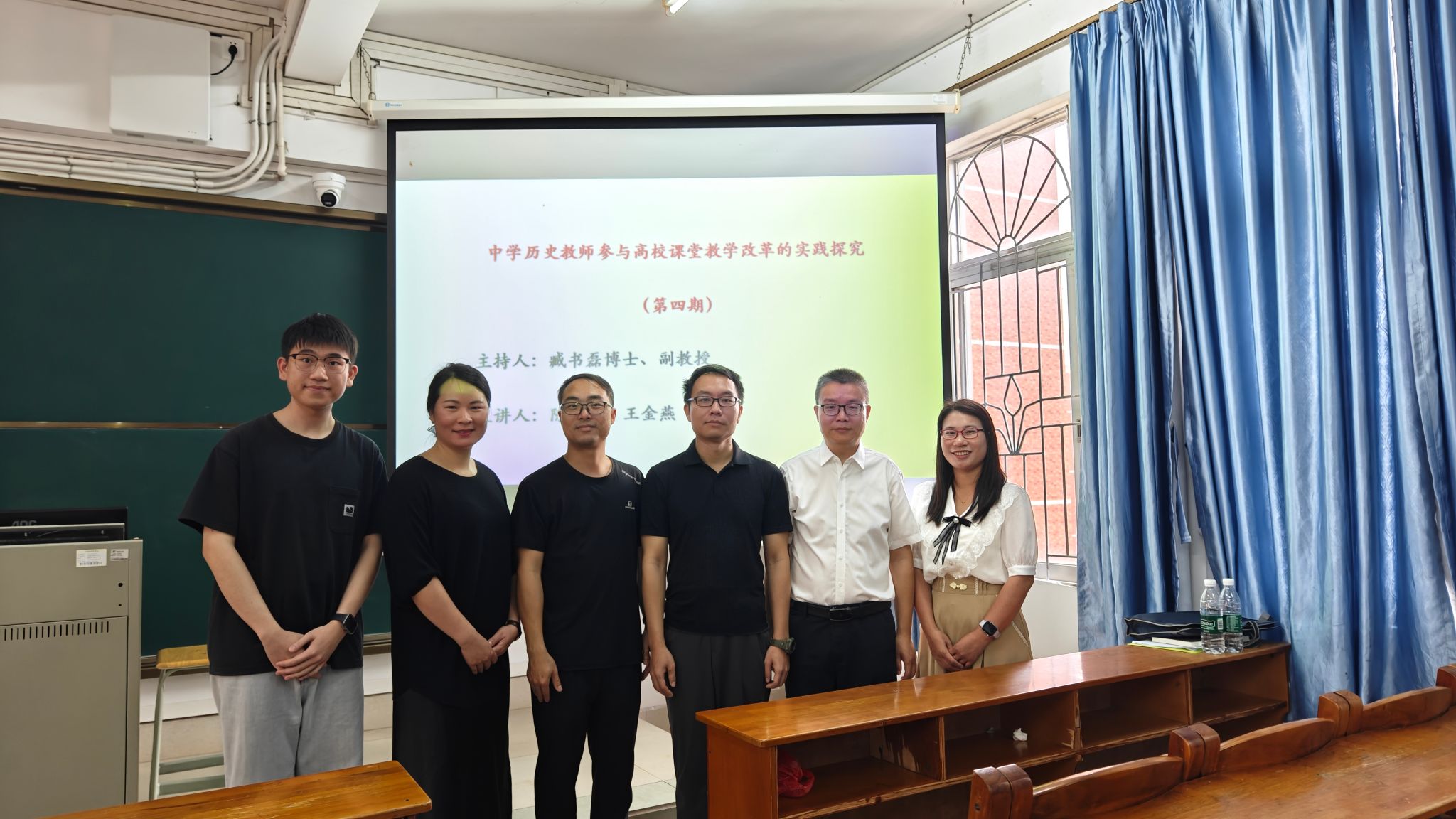 为进一步深化高校--政府--中小学(U-G-S)协同育人机制,破解师范教育校地协同薄弱问题,3月28日上午,法政学院邀请湛江市两位杰出校友,在弘雷楼703教室为历史系2025级学生进行示范课教学,探索“中学名师进高校课堂”嵌入式教学新模式。历史系世界史教研室主任臧书磊博士、副教授主持此次活动,彭毅聪博士等教师到场观摩指导。
