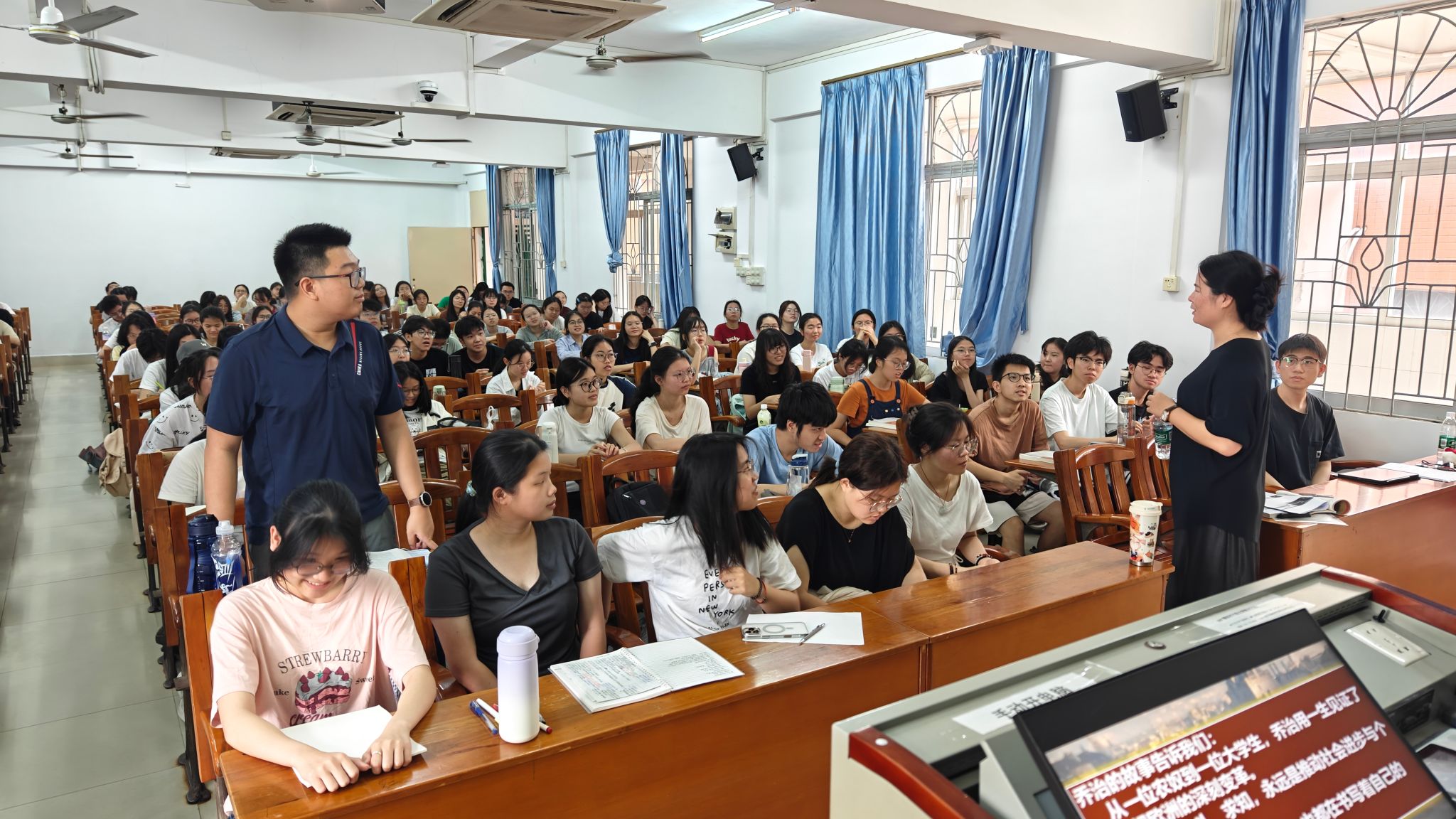 课后,同学们围绕教学内容难度把控、教师招聘面试技巧等问题,与两位授课教师及麻章区第一中学副校长全国思等开展深入交流研讨。曾获2025年度广东省师范生技能竞赛二等奖的黄信恺同学,结合参赛经验也谈了课程的感受。臧书磊博士在总结中表示,法政学院将持续创新育人模式,不断深化教学改革,助力学校新时代师范教育高质量发展。