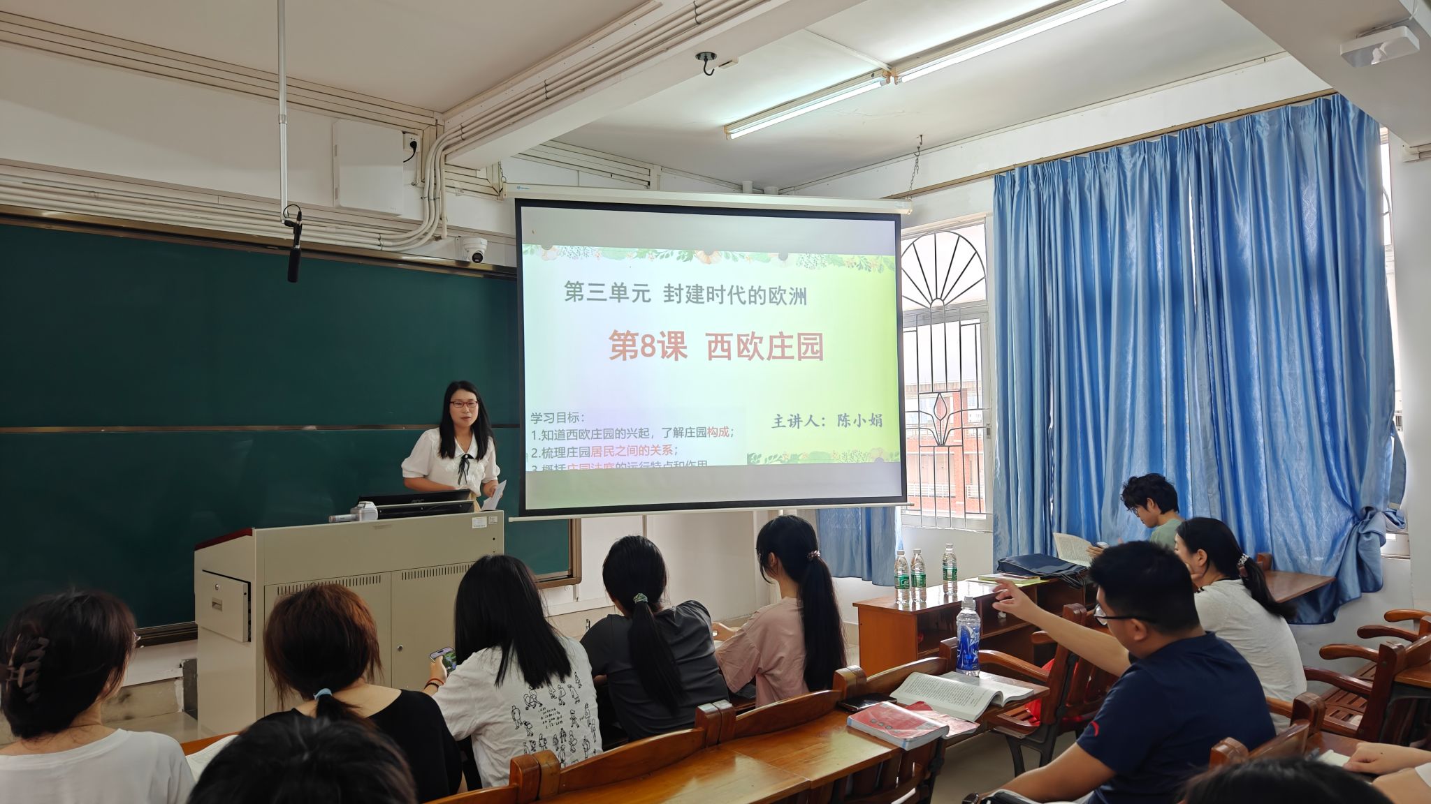活动邀请坡头区爱周中学陈小娟老师、寸金培才学校王金燕老师授课,分别展示《西欧庄园》《中世纪城市和大学的兴起》学科内容。两位老师运用AI教育技术与情境教学法,为师范生呈现了高质量的一线课堂范例。中学名师走进高校课堂,既是落实教育部U-G-S协同育人与本研贯通培养新模式的具体行动,也是深化校地合作的重要抓手,更是夯实学校教育硕士培养、支撑未来学科教学(历史)硕士点建设的关键举措。