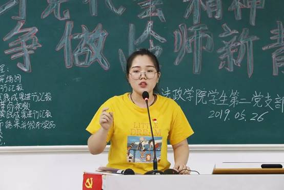 为进一步学习和贯彻落实中国共产党岭南师范学院第一次代表大会精神,5月26日晚,法政学院学生第二党支部于弘雷楼605室举办以“学习党代会精神,争做岭师新青年”为主题的基层党组织宣传教育实践成果展示活动。法政学院学生第一党支部副书记余龙凤、法政学院学生第二党支部副书记赖晓婷、法政学院学生党建中心正职负责人刘宇聪、文传学院学生第二党支部副书记卢泉奋以及文传学院学生第二党支部的全体党员同志出席了本次活动。