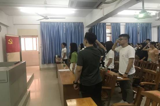 其后,在主持人的组织之下,在场的党员、发展对象和积极分子踊跃参与到党规党纪知识问答环节,该环节在活跃轻松的竞答中引导党员、发展对象和积极分子深入学习党规党纪,唤醒党章意识、党规意识、纪律意识,营造守纪律、讲规矩的良好氛围,也检验了法学党小组组织党纪党规的集中学习、互相探讨和个人自学的学习成果。接着,小组党员分享个人的入党动机,重忆入党初心,引导入党积极分子进一步审视自我的入党动机,以坚定理想信念,以党员的标准要求自己,争取早日加入中国共产党。在支部副书记余龙凤同志的带领之下,党员、发展对象和积极分子一起宣读入党誓词,表达一心跟党走的决心和对党忠贞不渝的情怀。此外,参与活动的全体成员认真地填写支部生活意见反馈表,积极地为党支部建设建言献策。