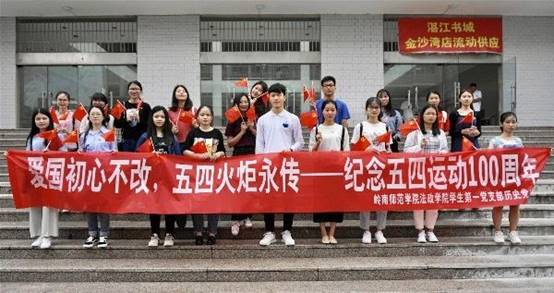 为纪念五四运动100周年、弘扬爱国主义精神,法政学院学生第一党支部历史专业党小组积极策划与组织,于2019年5月7日下午前往湛江一中培才学校进行爱国主义精神宣讲,开展了主题为“爱国初心不改,五四火炬永传——纪念五四运动100周年”的党日活动。法政学院学生第一党支部历史专业党小组成员、法政学院历史专业全体积极分子与发展对象、湛江一中培才学校部分学生参与了此次活动,参与人数达305人。