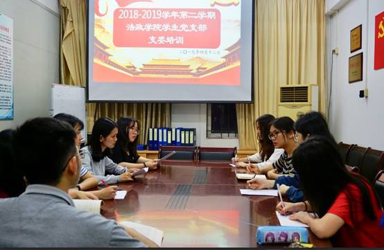 为进一步加强和改进学生党组织建设,提升学生党支部支委的能力和水平。2019年4月12日晚,法政学院学生党支部于弘雷楼小会议室开展了支委培训活动。学生党建中心指导老师苏晓敏、学生党支部全体支委以及学生党建中心主任团出席本次会议。本次会议由学生党建中心副主任梁晓华主持。