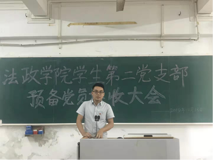 2019年10月13日,法政学院学生第二党支部于弘雷楼503室召开了预备党员接收大会,本次大会共有19名同志符合接收条件。支部书记李从来老师、全体学生党员和19名拟接受预备党员出席本次会议,大会由支部副书记王春果同志主持,由组织委员赖晓婷同志作会议记录。