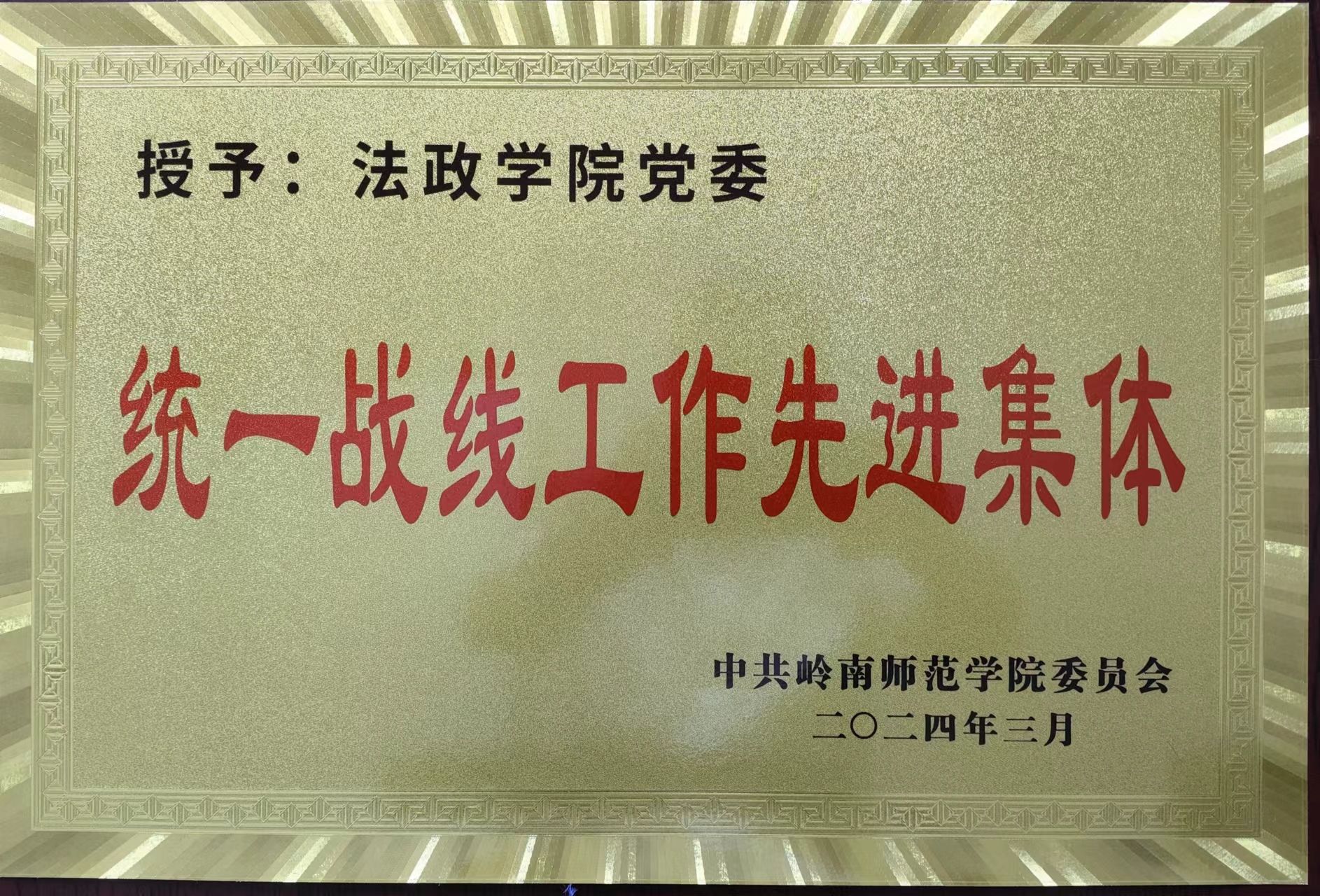 法政学院获岭南师范学院2023年度治安综合治理(平安建设)工作先进单位称号
