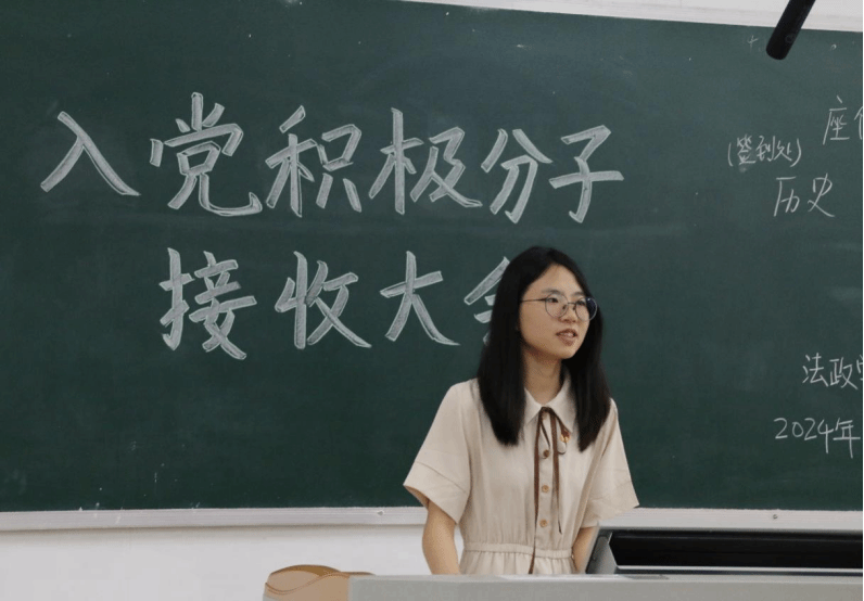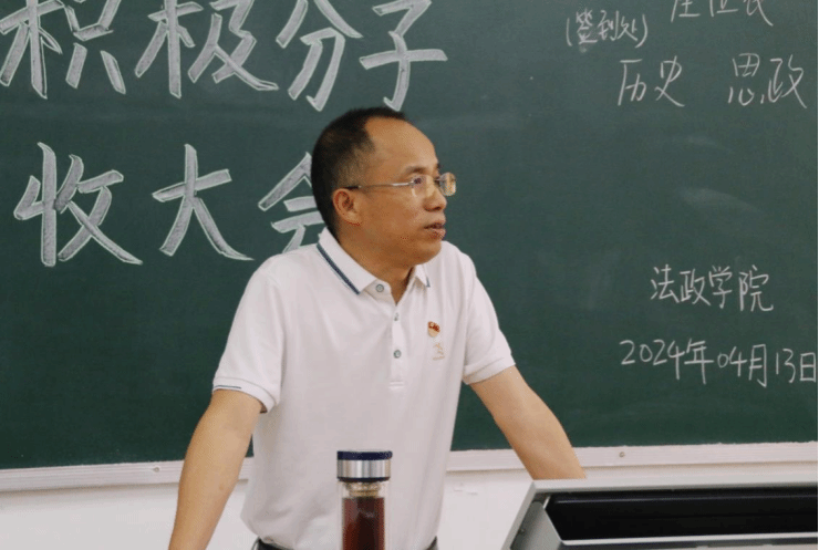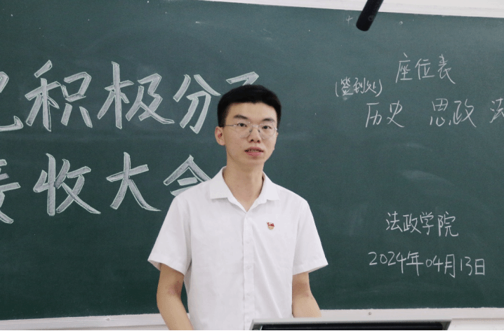 4月13日晚上,法政学院于第三教学楼904室召开了入党积极分子接收教育大会,对新一批入党积极分子开展党性修养、理想信念教育,扎实推进学生党员发展工作,筑好发展党员的“蓄水池”。法政学院党委副处级组织员黎祎,思政系、历史系和法学系三个学生党支部的党员代表和2024年3月批次的入党积极分子近80人参加了会议。会议由法政学院法学系学生党支部彭思楷同志主持。