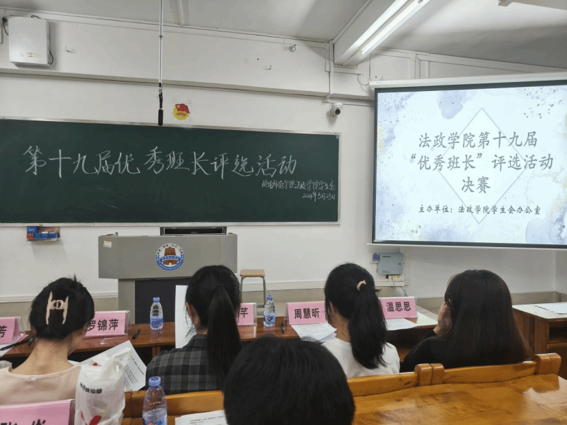 为树立典型,加强法政学院班级建设,发挥榜样引领作用,5月25日晚法政学院于弘雷楼905室开展第十九届“优秀班长”评选活动。学生会指导老师罗锦萍、各学生机构主要负责人参加本次活动。