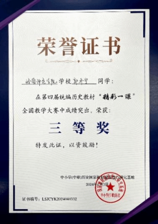 6月3日,第四届统编历史教材“精彩一课”全国教学大赛暨义务教育历史教材研究高端论坛在东北师范大学圆满落幕。来自北京师范大学、华东师范大学、华中师范大学、东北师范大学、陕西师范大学、西南大学等全国75所高校共300多名师生参加了此次活动。我校法政学院2021级历史学师范专业学子苏东懿和郭乔宁在比赛中分别荣获一等奖和三等奖。继上届选手参赛获得一等奖后,今年的比赛成绩再创新高,我校是所有获一等奖院校中唯一的省属师范学院。获奖人数和等级与国内一些名牌重点师范大学相当,在广东省参赛院校中名列第一。