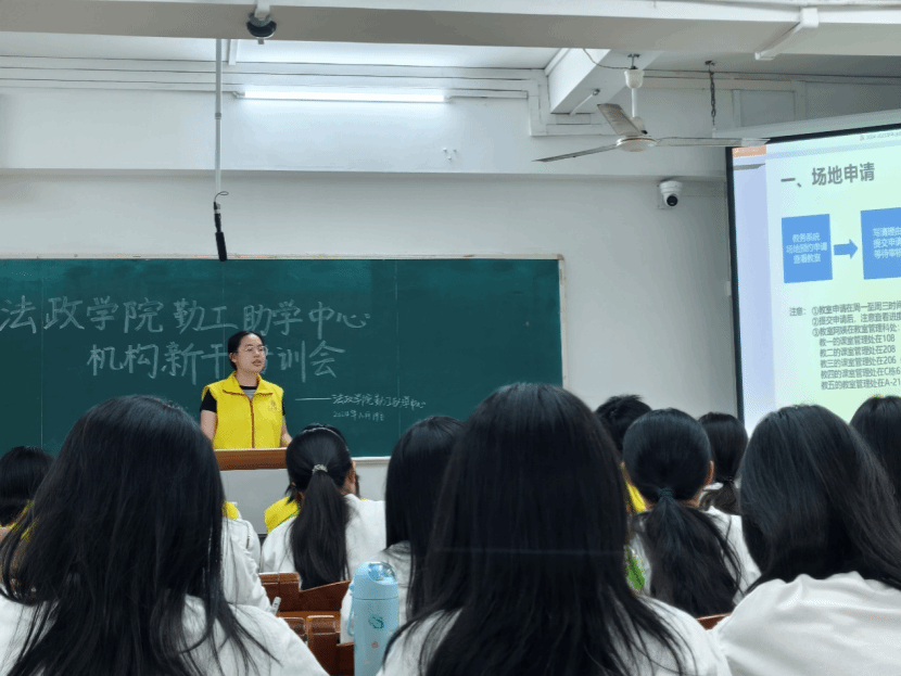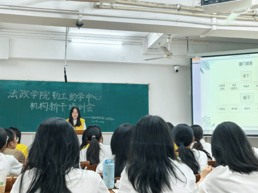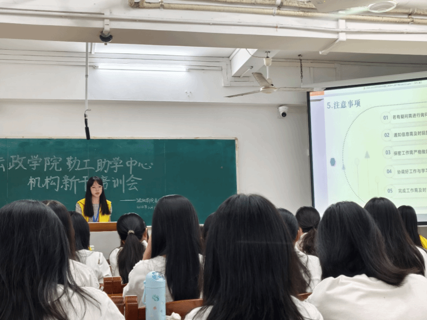 为进一步提高2024新干的工作效率和工作意识,法政学院勤工助学中心于2024年10月19日晚在弘雷楼205教室开展新干培训会议。法政学院勤工助学中心全体成员参加会议。勤工助学中心副主任周灵玥主持会议。