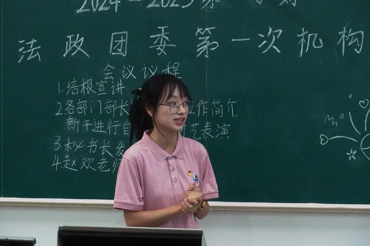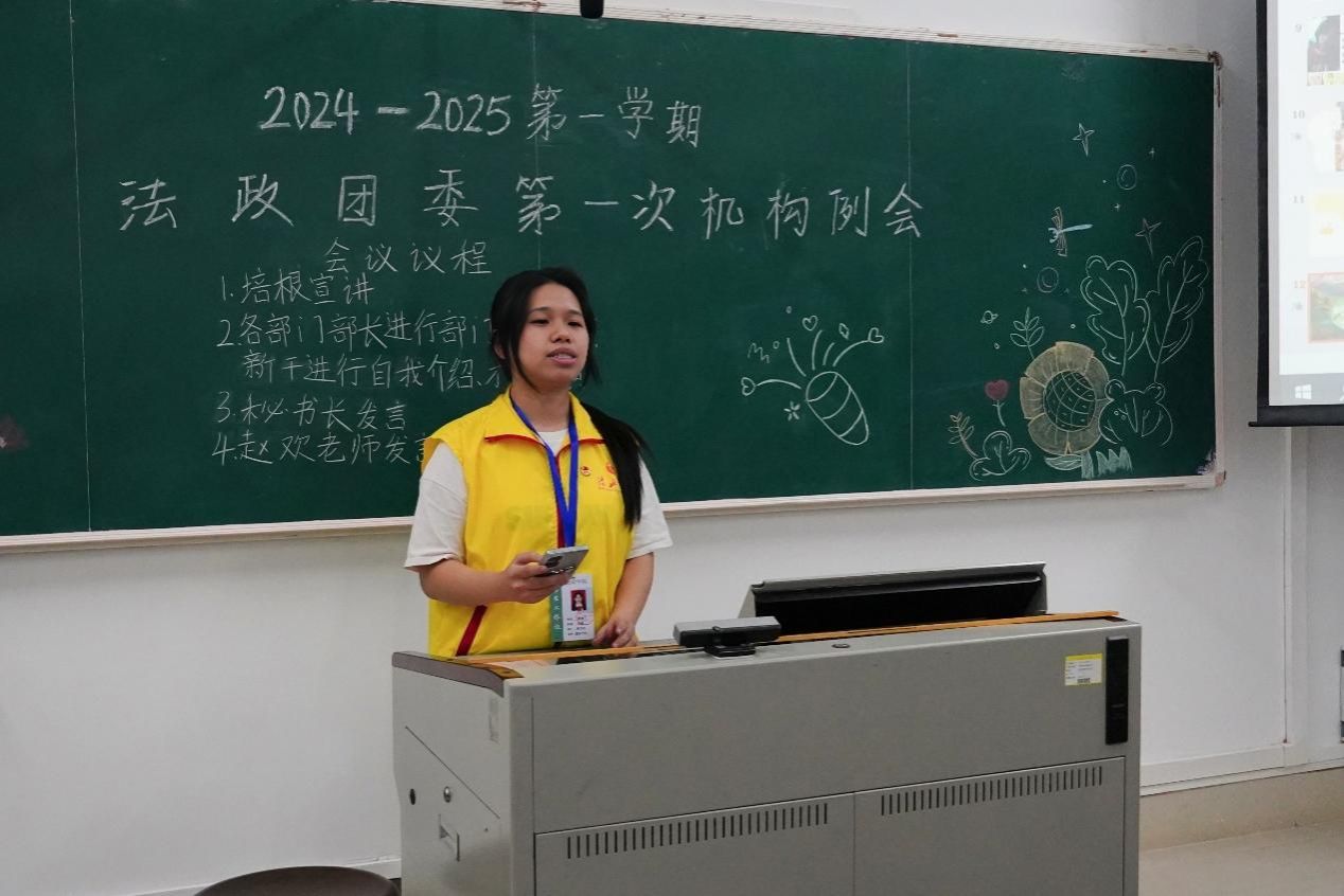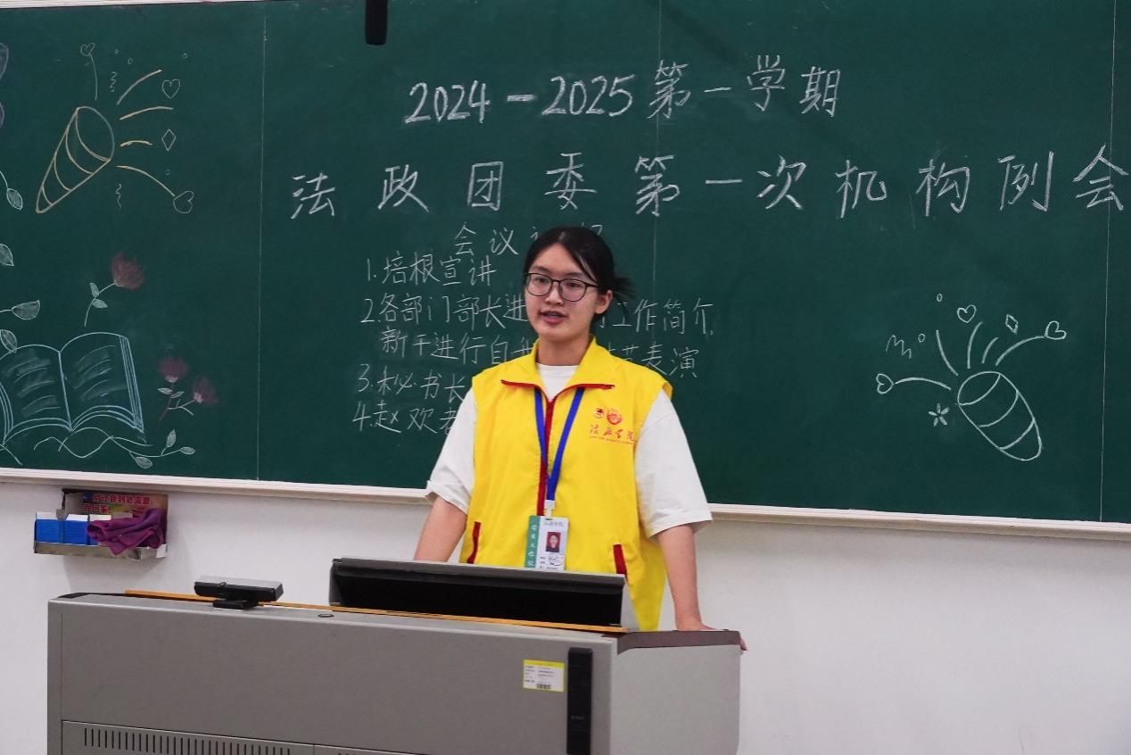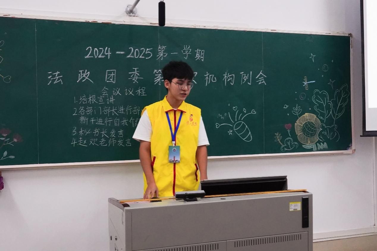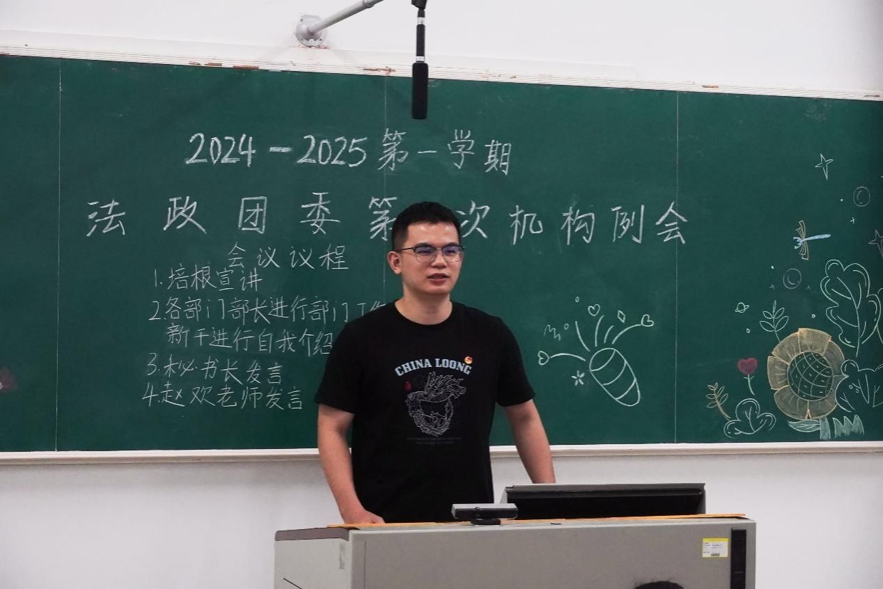 为增强法政学院团委各部门之间的沟通与交流,进一步增强学院团委的凝聚力,以实际行动学习贯彻习近平新时代中国特色社会主义思想和党的二十届三中全会精神,推动法政团委工作高质量发展,11月6日晚上,法政学院团委于弘雷楼107室举行2024-2025学年第一学期机构例会暨新干见面会,团委书记赵欢、团委秘书团以及各部门干事参加此次会议。