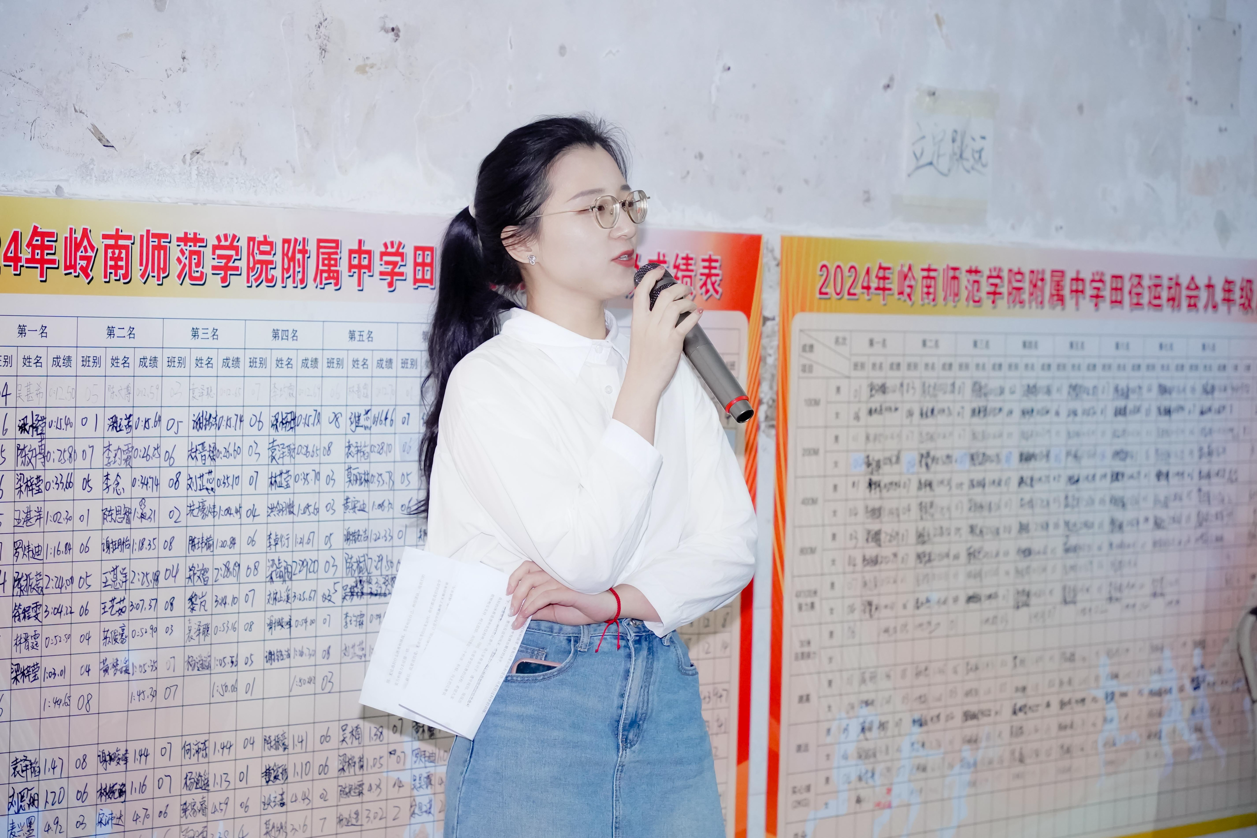 随后,黄诗娜作了指导讲话,她首先对全体运动员所展现出的不畏艰辛、积极备战的崇高精神给予了高度评价,并就运动员们的日常训练及比赛事宜,提出了以下三项重要注意事项:其一,务必坚持安全第一的原则,训练或比赛时要严格做好防护措施,充分进行热身准备。其二,要积极参与,科学训练。合理安排训练时间和强度,循序渐进地提升体能与技能。其三,要赛出友谊与风采。在比赛中,要尊重对手、遵守规则,展现出良好的体育道德和竞技精神。最后,她衷心祝愿每一位运动员都能在校运会中超越自我、成就非凡,并预祝法政学院在赛场上再续辉煌,再创佳绩。