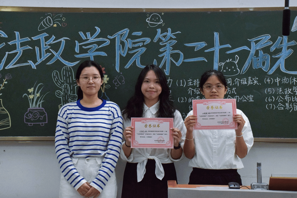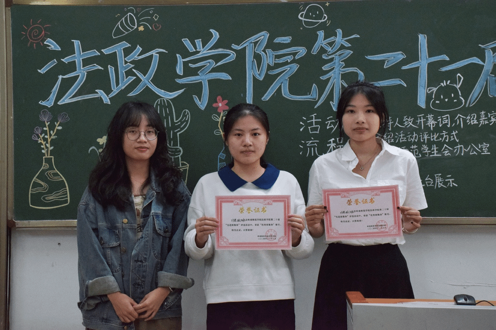 经过激烈的角逐,22思政2班荣获“先进班集体标兵”,23历史1班、22思政1班荣获“先进班集体”,23思政4班、23思政1班荣获“优秀班集体”,23历史2班、23法学2班、23法学1班荣获“精神风貌奖”。