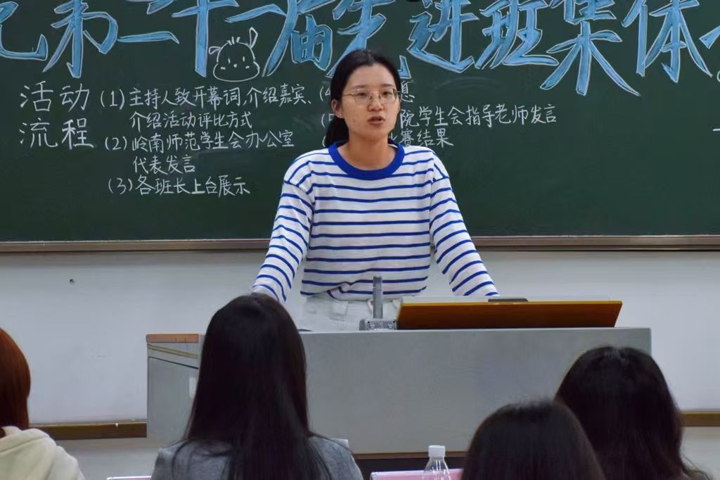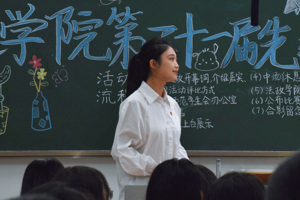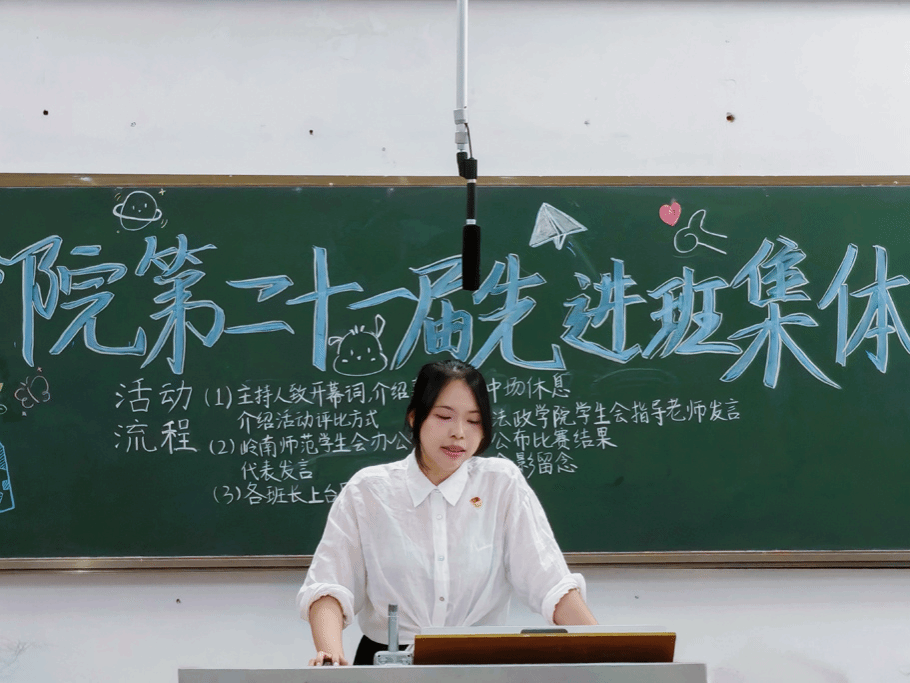 会上,黄诗娜老师首先对本次活动的顺利举办表示热烈的祝贺,并对致力于建设先进班集体的班委和筹备活动的工作人员表示感谢。她指出班级是同学们学习知识和培养能力的基本单位,也是同学们的精神家园与情感归属地,班级建设直接影响大家的成长与发展。此外,她对班委与班级同学对班级建设作出的贡献表示肯定,并指出评选结果并不代表结束,而是新的起点,获奖班级应当保持向上精神,继续深化班级建设,未获奖班级也应当学习获奖班级的特色,取长补短,向先进班级集体靠拢,打造优良的班级氛围,不断展现法政学子团结协作、积极进取的良好精神风貌。