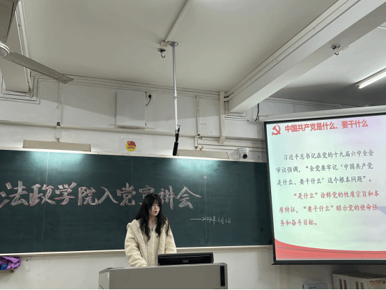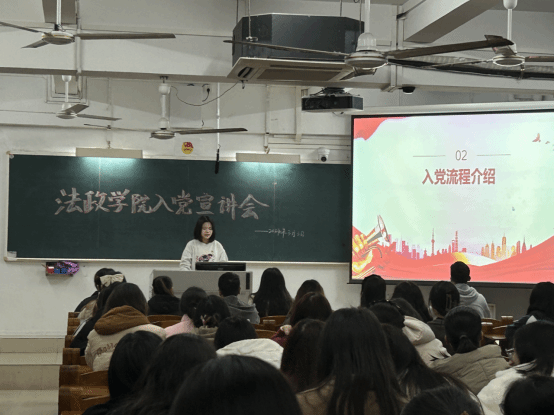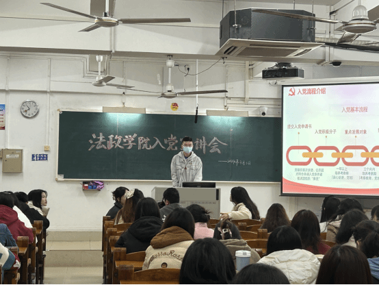 3月3日晚上,法政学院召开入党知识宣讲会,向有意愿申请入党、积极向党组织靠拢的同学们宣讲党的历史知识和党的创新理论,以及申请入党的流程和注意事项。宣讲会由思政系、历史系、法学系学生党支部联合举办。