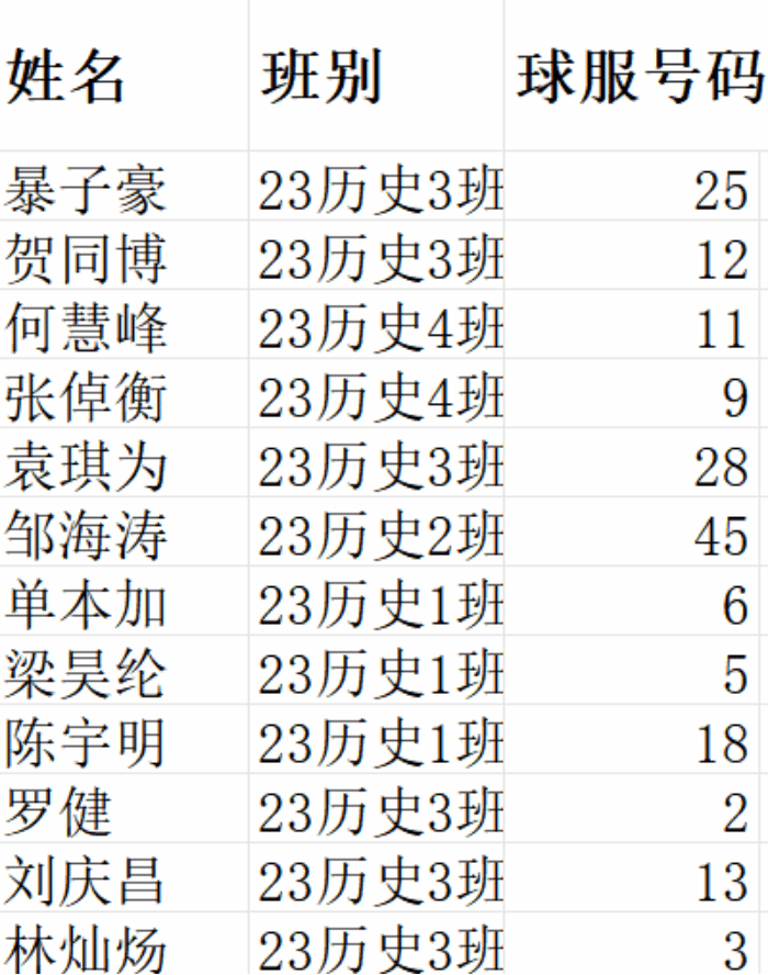 本次篮球赛汇集了以下班级篮球队,他们将在赛场上挥洒汗水,展现自己的篮球技艺参赛团队名单如下: