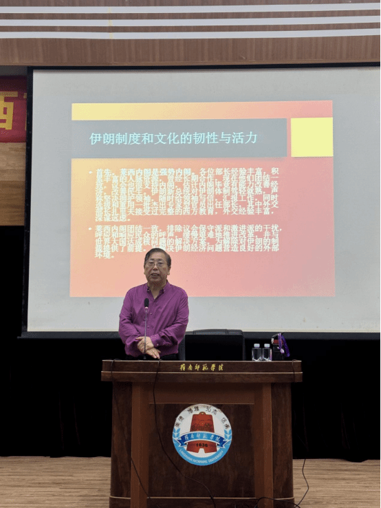 9月24日晚上,广东西部历史与海洋文化研究中心、法政学院特邀西南大学冀开运教授作《中伊文明互鉴历程及其特点》的学术报告,报告会在图书馆报告厅举行,法政学院副院长于卫青教授主持,历史系部分师生参加。